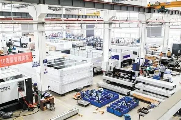 海目星(江門)激光智能裝備有限公司是蓬江區產(chan) 業(ye) 集群骨幹企業(ye) 代表。圖為(wei) 該公司車間