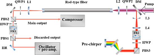 高功率超快光纖激光具有光束質量好、散熱性能佳、轉換效率高、體(ti) 積尺寸小等優(you) 勢,在工業(ye) 製造、國防軍(jun) 事及醫療檢測等領域具有重要應用。除了工業(ye) 領域脆性材料加工和微納結構製造方麵日益增長的需求外,高重頻高功率超快光纖激光在高通量高次諧波及阿秒脈衝(chong) 產(chan) 生等科研領域也發揮著日益重要的作用。目前在超快光纖激光領域,驅動激光一般由啁啾脈衝(chong) 放大技術加額外的後置壓縮級來產(chan) 生小於(yu) 50fs的脈衝(chong) 寬度。此方案的後置壓縮級一般采用複雜的充氣裝置,因此係統複雜度較高。