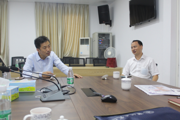 廣東(dong) 省激協秘書(shu) 長邵火(左) 與(yu) 清遠市科技局副局長楊勇熱情交流