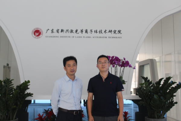 與(yu) 廣東(dong) 新興(xing) 激光等離子體(ti) 技術研究院副院長朱昆(右) 合影