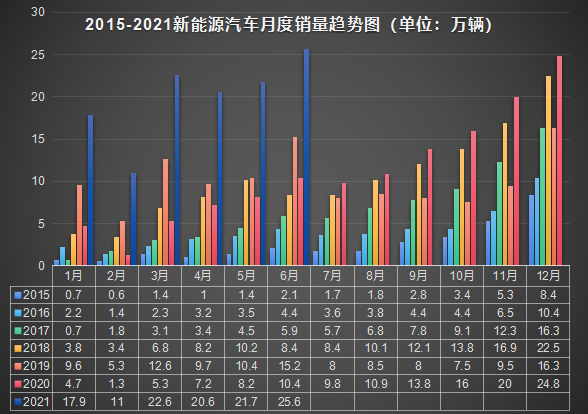 2015年,我國成為(wei) 新能源汽車銷售第一大國,至今6年時間,我國新能源汽車銷量始終保持穩步上升趨勢。隨之國內(nei) 新能源汽車生產(chan) 與(yu) 鋰電池行業(ye) 迅猛發展。中汽協統計,2021年上半年,我國新能源汽車銷量超120萬(wan) 輛,動力電池裝車量累計52.5GWh,累計銷量已與(yu) 2019年全年水平持平,新興(xing) 動能正持續擴大。時下,全球汽車產(chan) 業(ye) 電動化的速度不斷加快,各國政府提供消費者購車補助等政策支持,刺激全球新能源車銷售表現持續上升。美國銀行全球研究部預測,2025-2040年,全球包括純電動汽車(BEVs)和插電式混合動力汽車(PHEVs)在內(nei) 的所有電動汽車的全球滲透率將從(cong) 23%上升至67%。