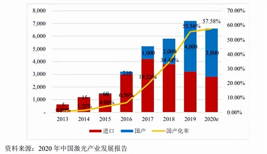 除下遊市場需求增長之外,國產(chan) 化替代趨勢及政策利好也是推動半導體(ti) 激光行業(ye) 發展的重要因素。