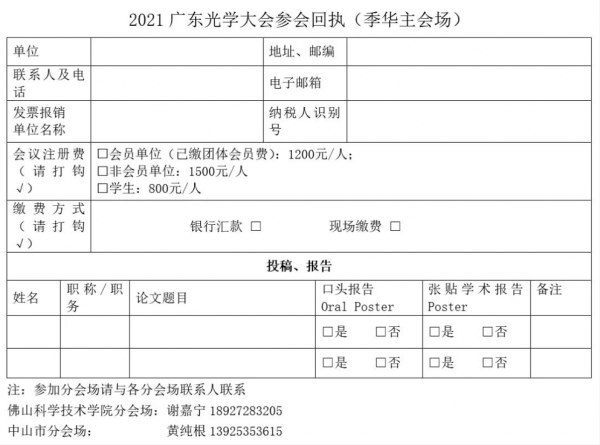 (會(hui) 議信息將通過廣東(dong) 省光學學會(hui) 郵箱、網站、微信公眾(zhong) 號等發布和接收)