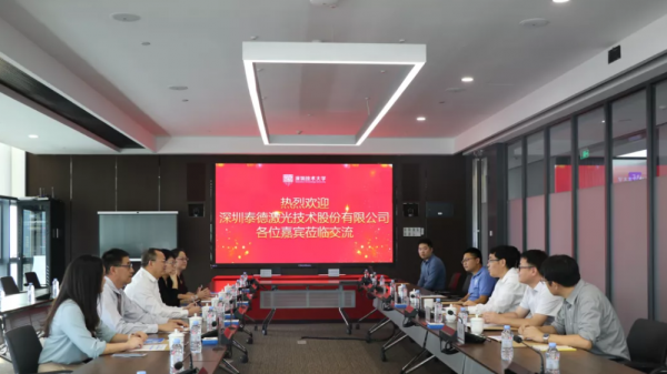 2021年10月29日下午,深圳泰德激光技術股份有限公司(以下簡稱“泰德激光”)應邀訪問深圳技術大學,與(yu) 深技大開展校企合作座談並簽訂戰略合作框架協議。泰德激光董事長張凱、執行總經理周學慧、副總經理陸明等領導一行,深圳技術大學校長阮雙琛、科研與(yu) 校企合作部主任吳旭、中德智能製造學院院長張文偉(wei) 以及相關(guan) 教師出席簽約儀(yi) 式。