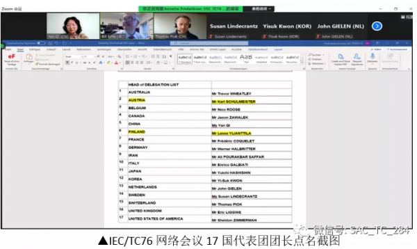 2021年度係列會(hui) 議 成功召開 -全國光輻射安全和激光設備標準化技術委員會(hui) - 會(hui) 議概覽 中國電子科技集團公司第十一研究所作為(wei) IEC/TC76國內(nei) 技術對口單位和全國光輻射安全和激光設備標準化技術委員會(hui) (SAC/TC284)秘書(shu) 處承擔單位,組織國內(nei) 16個(ge) 企業(ye) 單位的24名行業(ye) 專(zhuan) 家組成中國代表團,由SAC/TC284秘書(shu) 長戚燕任團長,中國代表團全程參加了8個(ge) 工作組WG1、WG3、WG4、WG7、WG8、WG9、JWG12、JWG10召開的9場會(hui) 議和IEC/TC76全體(ti) 會(hui) 議。 工作組名單 1、工作組 WG1 第1工作組 光學輻射安全工作組 WG3 第3工作組 激光輻射測量工作組 WG4 第4工作組 醫用療激光設備的安全工作組 WG5 第5工作組 光纖和自由空間光通訊係統的安全工作組 WG7 第7工作組 高功率激光器工作組 WG8 第8工作組 基礎本標準的發展和維護工作組 WG9 第9工作組 非相幹光源工作組 2、聯合工作組 JWG 10 IEC/ISO工業(ye) 材料加工環境中激光器和激光設備的安全聯合工作組 (與(yu) ISO/TC 172/SC9國際標準化組織/光學和光子學技術委員會(hui) /激光和光電係統分技術委員會(hui) 聯合)與(yu) ISO/TC172/SC 9相關(guan) 聯 JWG 12 眼睛和麵部的激光輻射防護聯合工作組 (與(yu) ISO/TC94/SC6國際標準化組織/人身安全防護和設備技術委員會(hui) /眼睛和麵部防護分技術委員會(hui) 聯合) JWG 21 可見光源和燈具的光生物安全聯合工作組 (與(yu) IEC/TC34國際電工委員會(hui) /燈技術委員會(hui) 聯合,由IEC/TC34管理) 3、谘詢小組 JAHG 10 光纖通訊中的激光安全管理聯合谘詢小組 (與(yu) IEC/TC86國際電工委員會(hui) /光纖技術委員會(hui) 聯合,由IEC/TC86管理) 工作組會(hui) 議(11.3-11.11) 在11月9日WG9非相幹光源工作組第二次會(hui) 議上,中國代表SAC/TC284副主任委員牟同升教授發表了“虛擬圖像設備(AR/VR)的測量”報告,建議製定一個(ge) “眼睛緊貼顯示屏觀看虛擬圖像的光輻射安全”的新標準項目,與(yu) 會(hui) 各國專(zhuan) 家均表示關(guan) 注和讚成,並建議聯合IEC/TC110電子顯示屏技術委員會(hui) 共同參與(yu) ,並責成牟同升教授繼續推進該議題的後續工作。 在11月10日JWG10 IEC/ISO工業(ye) 材料加工環境中激光器和激光設備的安全聯合工作組會(hui) 議上,中國代表SAC/TC284馮(feng) 建國副主任委員發表了我國按照歐盟指令C類標準起草的《ISO/IEC 11553-2機械安全-激光加工機-第2部分:手持激光加工設備的安全要求》標準修訂草案內(nei) 容的報告。與(yu) 會(hui) 各國代表審議通過了草案內(nei) 容並同意提交全體(ti) 會(hui) 議審議投票。 在11月12日IEC/TC76全體(ti) 會(hui) 議上,9個(ge) 工作組組長總結了自2020年全會(hui) 以來的工作進展情況,17個(ge) 國家代表審議通過了8項投票決(jue) 議,其中第8項投票,17個(ge) 國家代表一致通過了2021年正式啟動《ISO/IEC 11553-2機械安全-激光加工機-第2部分:手持激光加工設備的安全要求》標準修訂工作,馮(feng) 建國任該標準項目組長,項目完成時間36個(ge) 月。ISO/IEC 11553-2是SAC/TC284承擔的第二項國際標準的製定工作。 這是我國第16次組團參加IEC/TC76國際會(hui) 議,在過去的16年裏,中國積極參與(yu) 國際標準的各項活動,增強了我國在光輻射安全與(yu) 激光設備國際標準化領域的話語權與(yu) 影響力,向世界展示了我國在此標準化領域的實力與(yu) 水平。SAC/TC284作為(wei) IEC/TC76國內(nei) 技術對口標準化技術委員會(hui) ,將繼續帶領我國激光行業(ye) 在標準化領域同各國專(zhuan) 家進行深入討論、交流與(yu) 合作,積極參與(yu) 標準化的各項活動,爭(zheng) 取新的標準項目,為(wei) 我國標準化領域做出更多貢獻。