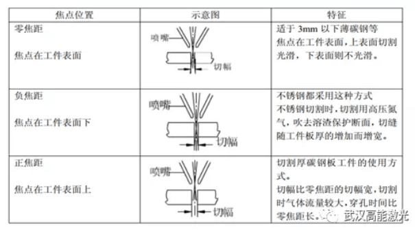 在激光切割中,焦點位置對材料的切割效果影響很大,不同的材質或厚度,激光切割時對應不同的焦點位置。