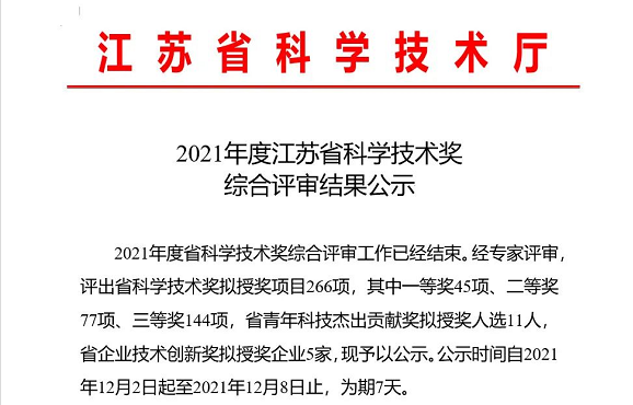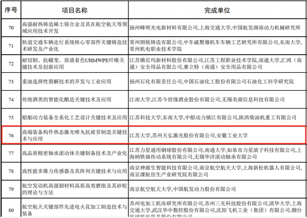 12月2日,江蘇省科技廳公布了2021年度江蘇省科學技術獎綜合評審結果,天弘激光與(yu) 江蘇大學和安徽工業(ye) 大學共同以“高端裝備構件熱態激光噴丸抗疲勞製造關(guan) 鍵技術與(yu) 應用”榮獲“2021年度江蘇省科學技術獎”二等獎。