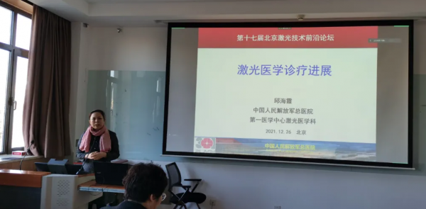 解放軍(jun) 總醫院第一醫學中心激光醫學科主任,副主任醫師邱海霞作《激光醫學診療進展》報告