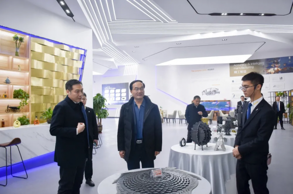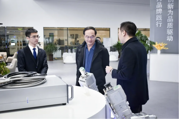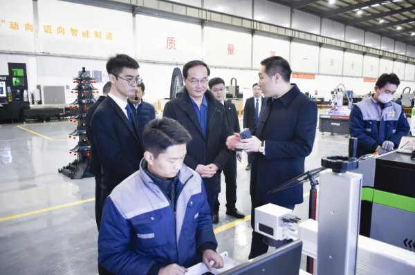 1月11日,省委統戰部副部長、省工商聯黨(dang) 組書(shu) 記周雲(yun) 平一行到大圖激光調研指導工作,實地參觀企業(ye) 展廳、生產(chan) 車間和技術研發中心,詳細了解企業(ye) 生產(chan) 和研發情況,並召開座談會(hui) 聽取有關(guan) 工作情況匯報,與(yu) 張安明董事長就企業(ye) 未來發展進行麵對麵交流。
