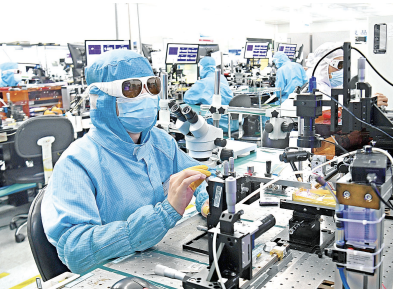銳科激光技術人員在組裝超高功率工業(ye) 光纖激光器部件。 長江日報記者高勇 攝