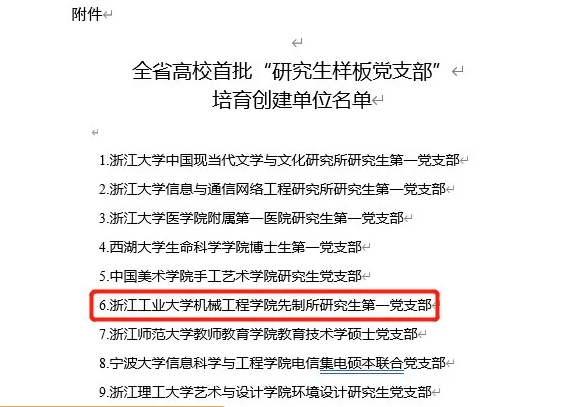 ☆ 團隊先製所研究生第一黨(dang) 支部入選全省高校首批“研究生樣板黨(dang) 支部”培育創建單位。
