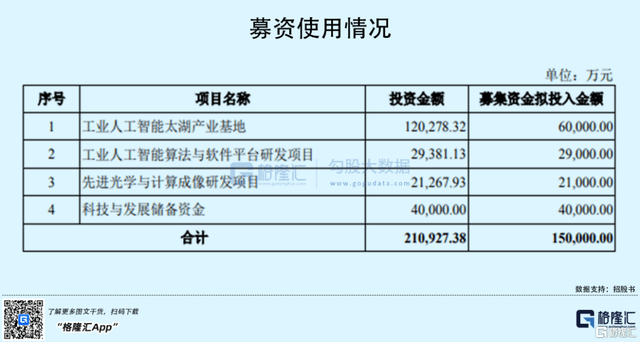 本次IPO擬募集15億(yi) 元,主要用於(yu) 工業(ye) 人工智能太湖產(chan) 業(ye) 基地、工業(ye) 人工智能算法與(yu) 軟件平台研發項目、先進光學與(yu) 計算成像研發項目、科技與(yu) 發展儲(chu) 備資金。