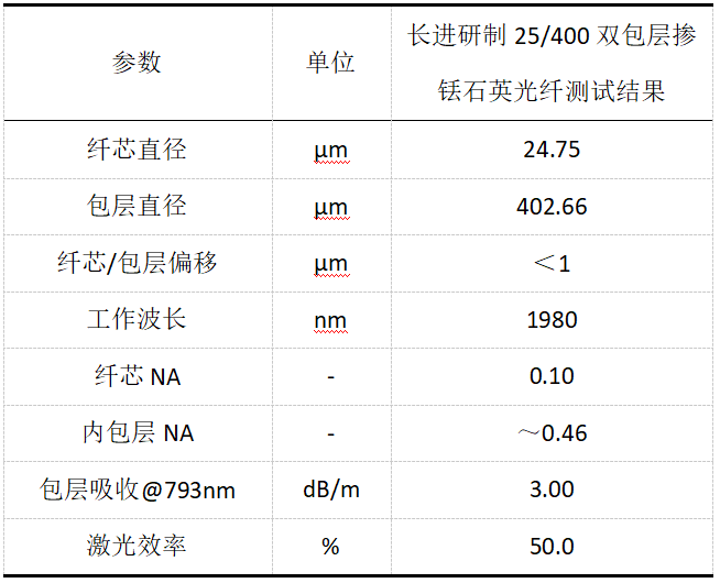 圖2 長進25/400雙包層摻銩石英光纖參數