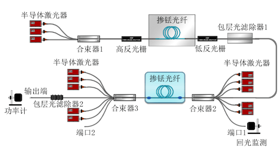 圖 3 530W雙端泵浦摻銩全光纖MOPA係統結構圖