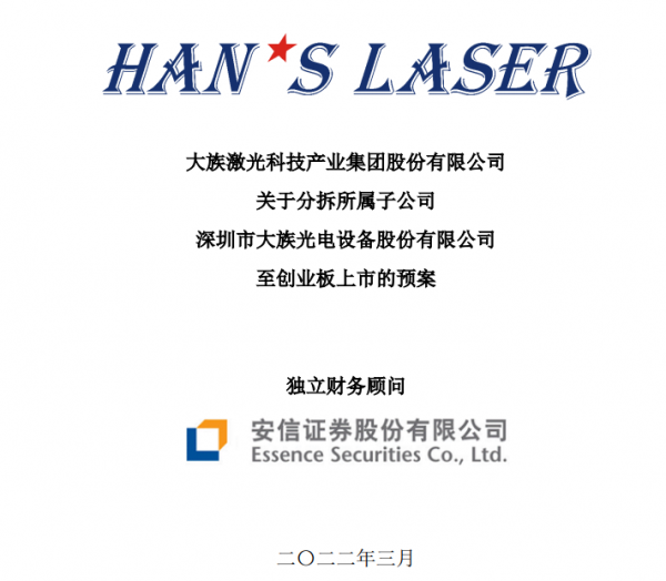 旗下子公司大族數控創業(ye) 板上市僅(jin) 1周,大族激光又在推進另一家子公司的分拆上市。