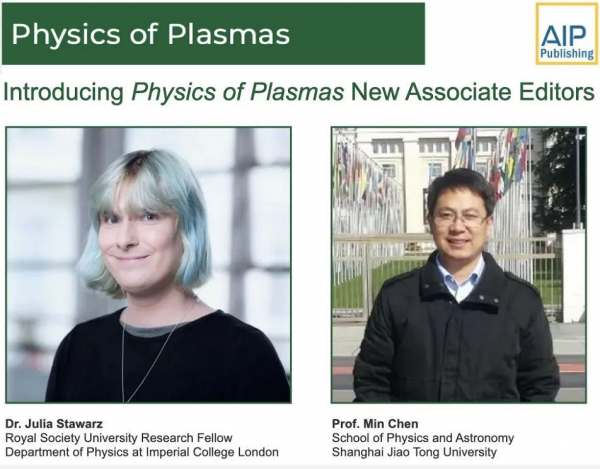 近日,上海交通大學物理與(yu) 天文學院陳民教授與(yu) 帝國理工學院Julia Stawarz研究員應Physics of Plasmas主編Michael E. Mauel邀請擔任該刊的新任副主編。Physics of Plasmas由美國物理聯合會(hui) (AIP) 出版社與(yu) 美國物理學會(hui) (APS)等離子體(ti) 物理分會(hui) 合作出版。該刊起源於(yu) 1958年創刊的Physics of Fluids雜誌,1994年正式定名為(wei) Physics of Plasmas,是等離子體(ti) 物理領域國際著名的綜合性期刊,致力於(yu) 出版在理論、計算和實驗等離子體(ti) 物理領域的原始研究。