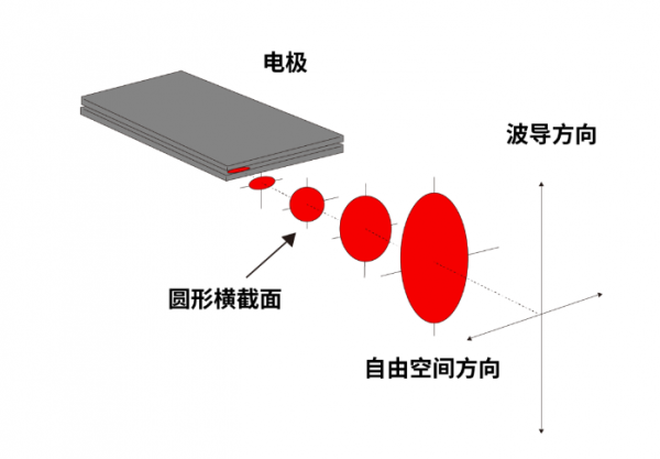 激光束在腔內(nei) 多次振蕩,通過兩(liang) 極板間的平片空間,在前鏡的一側(ce) 輸出,造成最終輸出的激光光束在寬度和高度方向上的不對稱。激光束表現在兩(liang) 個(ge) 方向上的發散角和光斑大小不同,在寬度方向上的發散角小,高度方向上的發散角大,即兩(liang) 個(ge) 方向的光束質量不同。