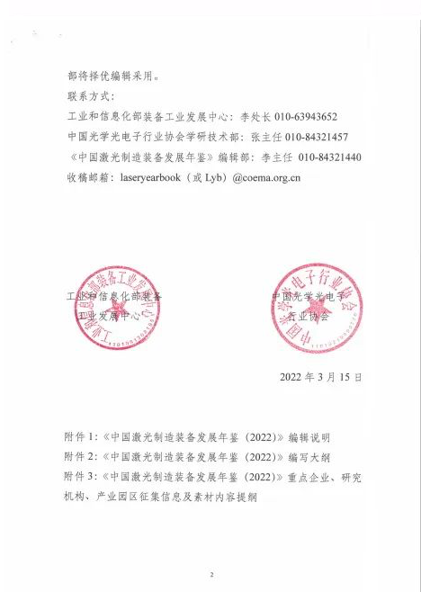 各有關(guan) 單位:為(wei) 了反映我國激光製造裝備產(chan) 業(ye) 發展現狀及趨勢,為(wei) 我國的激光製造裝備行業(ye) 走向科學化、產(chan) 業(ye) 化、國際化的發展之路服務,工業(ye) 和信息化部裝備工業(ye) 發展中心與(yu) 中...