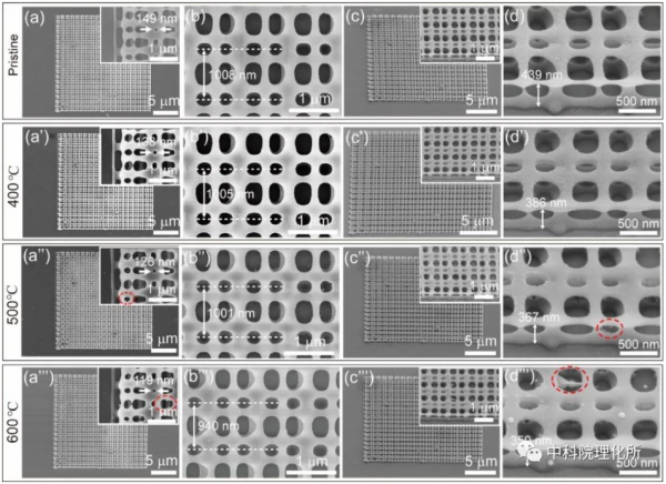 圖2.飛秒激光直寫(xie) 的3D HSQ雙層線條陣列結構的耐熱性研究