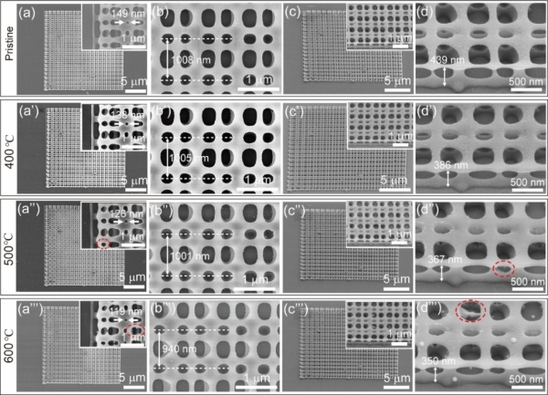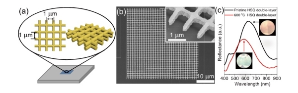 圖3.飛秒激光直寫(xie) 的具有耐熱性和仿生結構色的HSQ雙層陣列結構