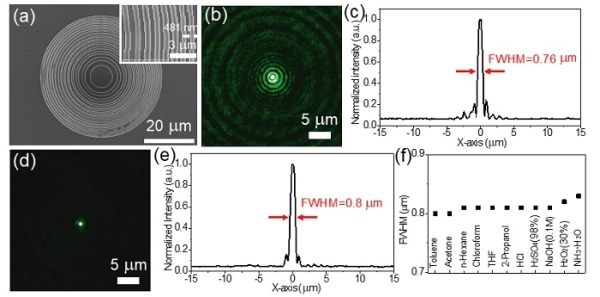 圖4.飛秒激光直寫(xie) 具有耐熱性和耐溶劑性的微型菲涅爾透鏡器件