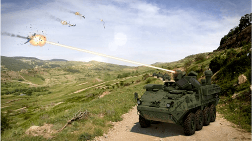 美國陸軍(jun) 也沒閑著。2021年10月25日,美國陸軍(jun) 宣布,它們(men) 正在申請一種300千瓦的固態激光器(“分布式增益高能激光武器係統”),並已授予通用原子公司(General Atomics)一份合同交付該激光器。如果成功開發,它的威力將足以摧毀一係列物體(ti) ,從(cong) 小型無人機到飛行導彈。今年3月初,美國陸軍(jun) 測試其首台高能激光(50kw)武器,今年夏天這種武器被安裝在一輛史賽克(Stryker)軍(jun) 用車輛上。到2024年,陸軍(jun) 還在研究一種強大的300千瓦間接火力保護能力——高能激光器(IFPC-HEL)車載激光器。