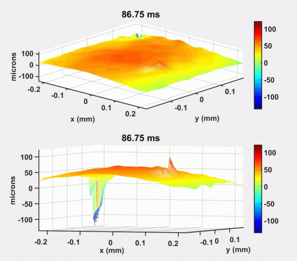 結果觀察到了明顯的熔池波動,以及熱區域軌跡的建立。這些初步結果都證明了使用雙波長全息術對熔池 3D 形貌監測的可行性。