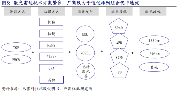 1.1、激光雷達技術路線繁多,產(chan) 業(ye) 百家爭(zheng) 鳴