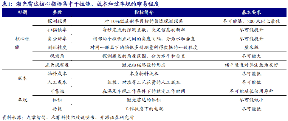 1.1.1、激光雷達箭在弦上,性能、成本、車規級缺一不可