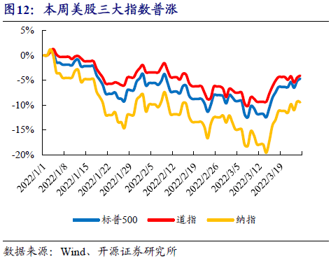 3月21日至3月25日美股三大指數普漲,標普500指數報4543點,上漲1.79%;道瓊斯工業(ye) 指數報34861點,上漲0.31%,納斯達克指數報14169點,上漲1.98%。