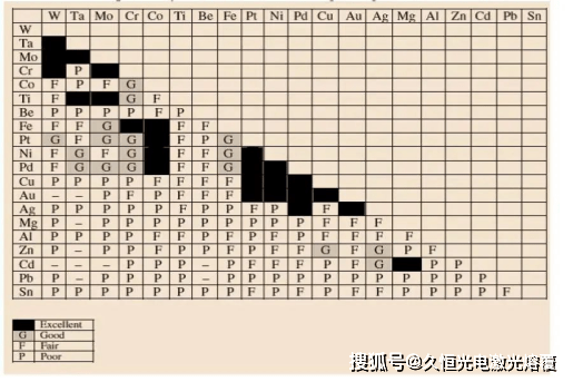 圖3 不同元素組合進行激光焊接時金屬的相容性