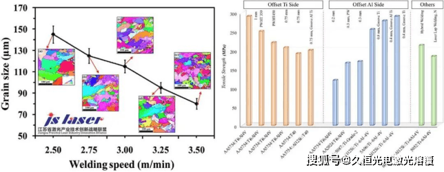 圖4 鈦合金與(yu) 其他監護材料繼續擰異種激光焊接時得到的顯微組織和拉伸強度
