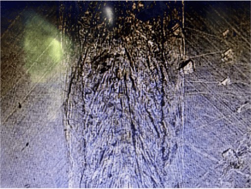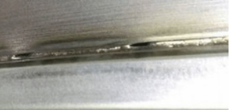 如果焊接速度過快,小孔後部指向焊縫中心的液態金屬來不及重新分布,在焊縫兩(liang) 側(ce) 凝固就會(hui) 形成咬邊。接頭裝配間隙過大,填縫熔化金屬減少,也容易產(chan) 生咬邊。激光焊結束時,如果能量下降時間過快,小孔容易塌陷,導致局部咬邊,控製功率和速度相匹配可以很好解決(jue) 咬邊的產(chan) 生。