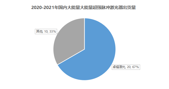 目前,卓鐳激光大能量超強脈衝(chong) 激光器在技術上已處於(yu) 世界領先水平,各項技術指標已達到或部分超過國際水平。從(cong) 細分市場來看,這一市場屬於(yu) 新興(xing) 領域,工業(ye) 化進程較慢,大多需求用於(yu) 工業(ye) 化預研和國防軍(jun) 工預研。近兩(liang) 年(2020年-2021年),針對脈衝(chong) 能量大於(yu) 6焦耳的大能量激光器,國內(nei) 設備台套市場總量大致為(wei) 30台,其中卓鐳激光出貨台數為(wei) 20台,市場占有率達到67%,處於(yu) 領先地位。