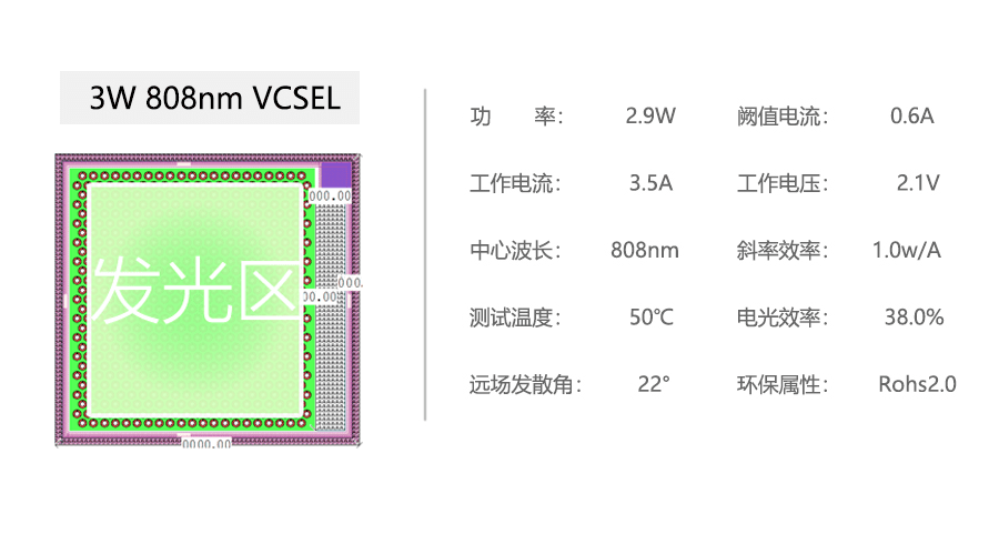 考慮到終端客戶實際應用需求,長光華芯不僅(jin) 可為(wei) 客戶提供808nm VCSEL芯片和高功率封裝模組。也可根據客戶需求提供定製化方案,通過對功率,波長,排布尺寸以及封裝設計等指標進行調整,快速響應不同終端客戶應用需求,幫助客戶贏得市場。