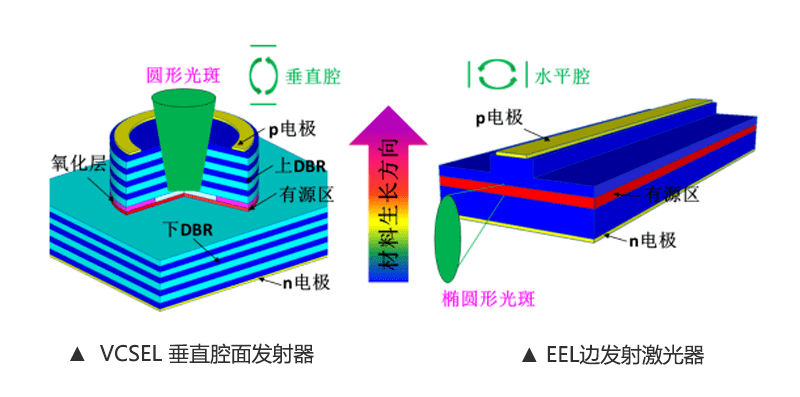 VCSEL是一種垂直腔麵發射激光器,與(yu) 傳(chuan) 統邊發射激光器(EEL)在結構上有很大的差異,這在一定程度上很好的彌補了傳(chuan) 統激光脫毛的應用弊端,具備獨特優(you) 勢:
