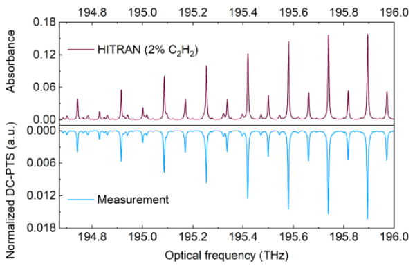 圖2.乙炔氣體(ti) 寬波段雙光梳光熱光譜