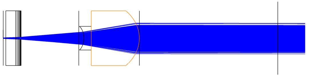 假設彎月型慢軸準直鏡和普通慢軸準直鏡有效焦距相同,使用彎月型慢軸準直鏡的係統總長度相較使用常規慢軸準直鏡的係統小很多。彎月型慢軸準直鏡可以幫助實現具有更小尺寸的緊湊型設計。