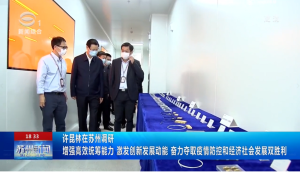 5月12日,江蘇省省委副書(shu) 記、省長許昆林一行在蘇州調研疫情防控和經濟社會(hui) 發展情況,期間,到訪蘇州長光華芯半導體(ti) 激光創新研究院進行調研視察。