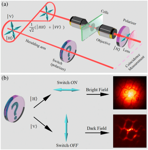 大多數生物細胞是微小透明的,通常情況下可看作是純相位物體(ti) ,因為(wei) 它們(men) 僅(jin) 影響輸入光場的相位而不是振幅。純相位物體(ti) 的散射光非常弱,使得從(cong) 壓倒性的輸入光背景中揭示其透明結構變得極具挑戰性。傳(chuan) 統顯微鏡的靈敏度和分辨率從(cong) 根本上受到環境噪聲的限製,可以通過增加照明光的強度有效降低環境噪聲的影響。但對於(yu) 光敏生物樣品,傳(chuan) 統顯微成像技術麵臨(lin) 一個(ge) 關(guan) 鍵困難:大的光照強度會(hui) 導致樣品的生物物理損傷(shang) 。