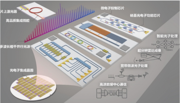 集成微腔光梳驅動的矽基集成光電子片上係統圖。 北京大學 圖