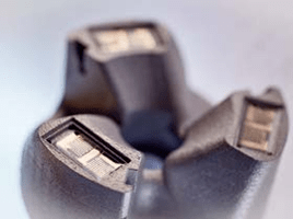 圖2使用USP激光器在渦輪葉片中進行精密深鑽孔。