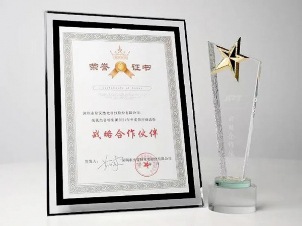 星漢激光榮獲傑普特集團2021年年度最佳供應商表彰——戰略合作夥(huo) 伴,雙方將攜手打造性能強大、可靠性高的激光器係列產(chan) 品,助力國家智能製造,持續為(wei) 用戶創造價(jia) 值。
