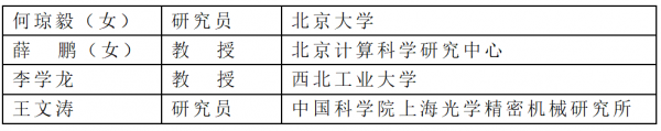 中青年科技人員獎獲獎者名單(按單位拚音排序)
