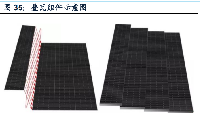 (1)半片組件:半片組件是指將電池對切後串聯起來的技術,因電池片麵積減小一 半,電流降為(wei) 原來1/2,串聯電阻引起的內(nei) 部損耗降低為(wei) 整片電池的1/4,進而提升 組件功率。因高效光伏電池輸出電流更高,組件封裝損耗大於(yu) 常規電池,將半片技 術應用於(yu) 高效光伏電池後增益效果也更加明顯。