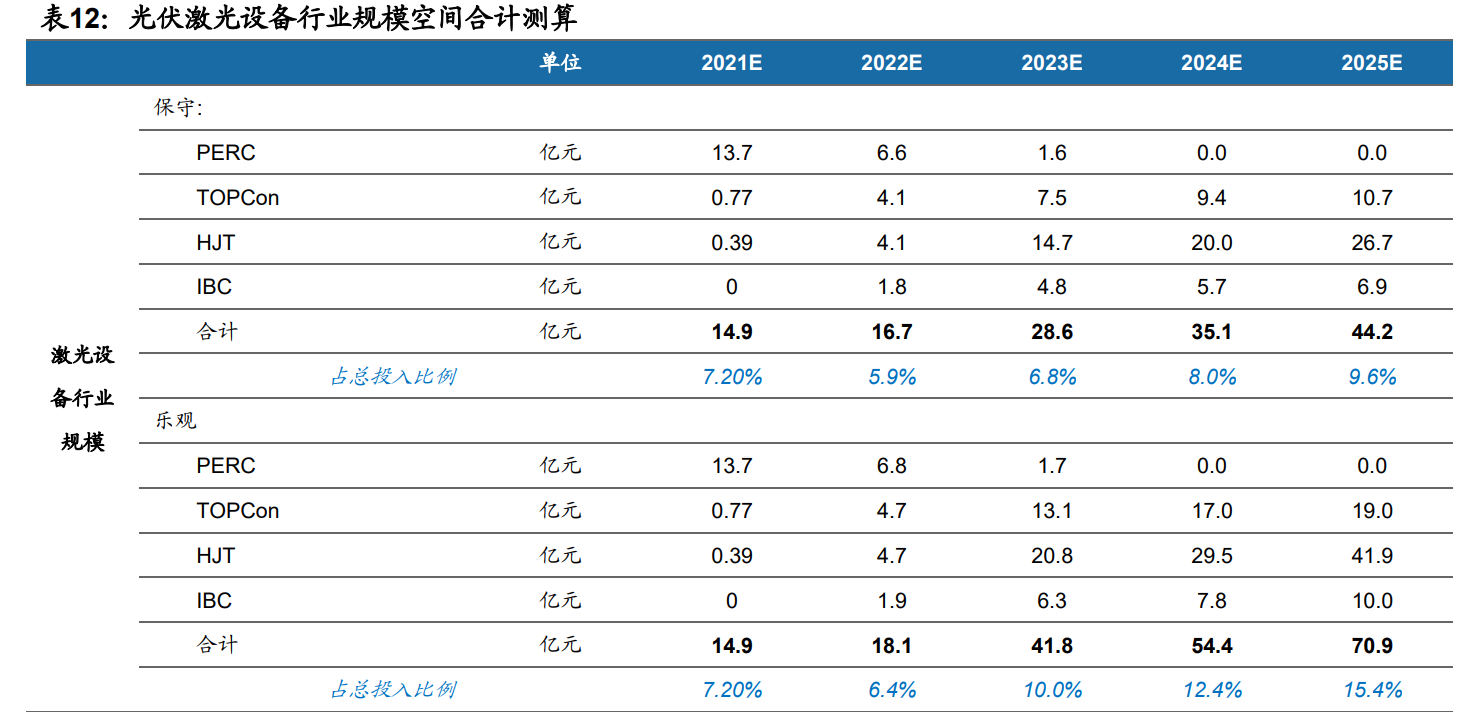 四、光伏激光設備行業(ye) 空間測算:受益技術進步和價(jia) 值量提升,行業(ye) 空間廣闊