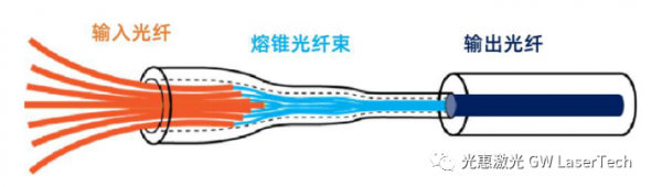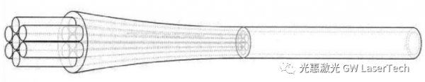 (2)功率合束器就是將多路單模激光合束到一根光纖中輸出,用來提高激光的輸出功率。