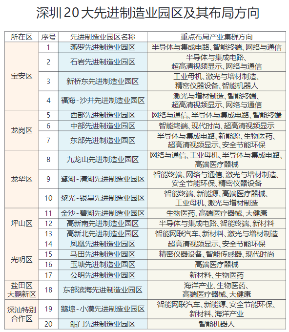 深圳20大先進製造業(ye) 園區空間布局規劃出爐!