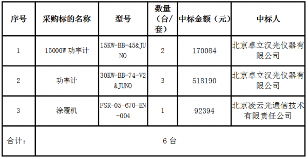 7、本項目采購標的名稱、數量、金額及中標人