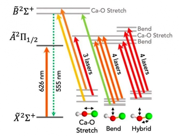 正如上述所說,我們(men) 已經可以做到激光冷卻堿金屬原子或者堿土族原子。然而要激光冷卻分子,卻還有比較大的困難要麵對:通常分子的結構要比原子複雜。在處理原子時,我們(men) 隻需要考慮電子能級,而在分子中我們(men) 還需要考慮振動轉動能級。這些“憑空”多出來的能級,會(hui) 讓我們(men) 難以找到合適的“循環躍遷”。